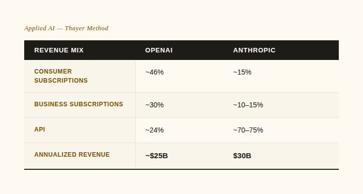 OpenAI built ChatGPT for everyone. Anthropic built Claude for businesses. Both companies have since converged toward each other, but the strategic starting point was different, and the revenue reflects it.